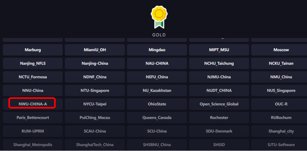 长期以来,学院始终对此项赛事保持高度重视,倾力为参赛队伍提供场地设施、师资指导和经费支持,独立的实验室和充足的研究经费都为项目的顺利开展提保驾护航。2017起,西北大学A队便在国际赛场上频展头角,连续五年夺得喜人成绩,将两金一银两铜收入囊中(2017开发一种监测石油泄露的生物传感器获铜奖;2018年改变盐渍土的离子配比获铜奖;2019年开发苯丙酮尿症的生物传感器收获金奖;2020年利用PhaP融合表达抗菌肽制作医用敷料摘得银奖),让世界看到了中国风采和西大力量。