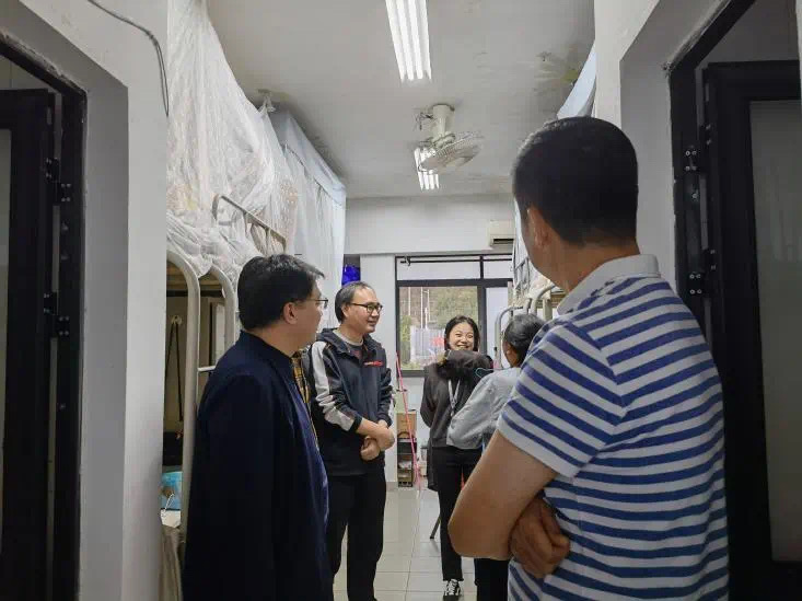我院创新班学生分别于华大一办、二办公寓楼居住,12月13日,在华大基因学院教育主管祁任锋的带领下,大家到学生宿舍看望慰问了全体学生。宿舍里,各位领导、老师逐一与同学们亲切交谈,详细询问了同学们在华大生活、学习、工作的具体情况,关切了解了大家的实际困难与存在问题,同学们也对大家的到来表示欣喜与欢迎。
