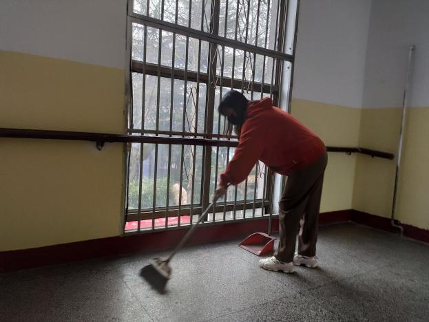 同学们有序分工,按楼层进行打扫。我们扫地擦地,擦洗老师们的办公室门,清洗楼梯扶手和墙角踢脚线等等。战“疫”还未结束,防疫必不可少。爱国卫生运动便是防疫重要一环。爱国卫生运动引导我们日常养成卫生习惯,增强环保理念,共同抗击疫情,体悟劳动价值,弘扬爱国精神!