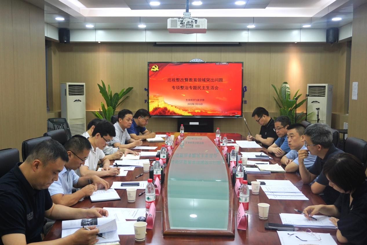 根据《中共西北大学委员会关于开好巡视整改暨教育领域突出问题专项整治专题民主生活会的通知》要求,7月15日上午,437437必赢国际网址召开生命科学学院、医学院处级领导干部巡视整改暨教育领域突出问题专项整治专题民主生活会。校党委常委、副校长,437437必赢国际网址主任陈富林出席,巡回指导第三小组联络员赵明星到会指导,学部全体处级领导干部参加,会议由医学院党支部(直属)书记张宇主持。