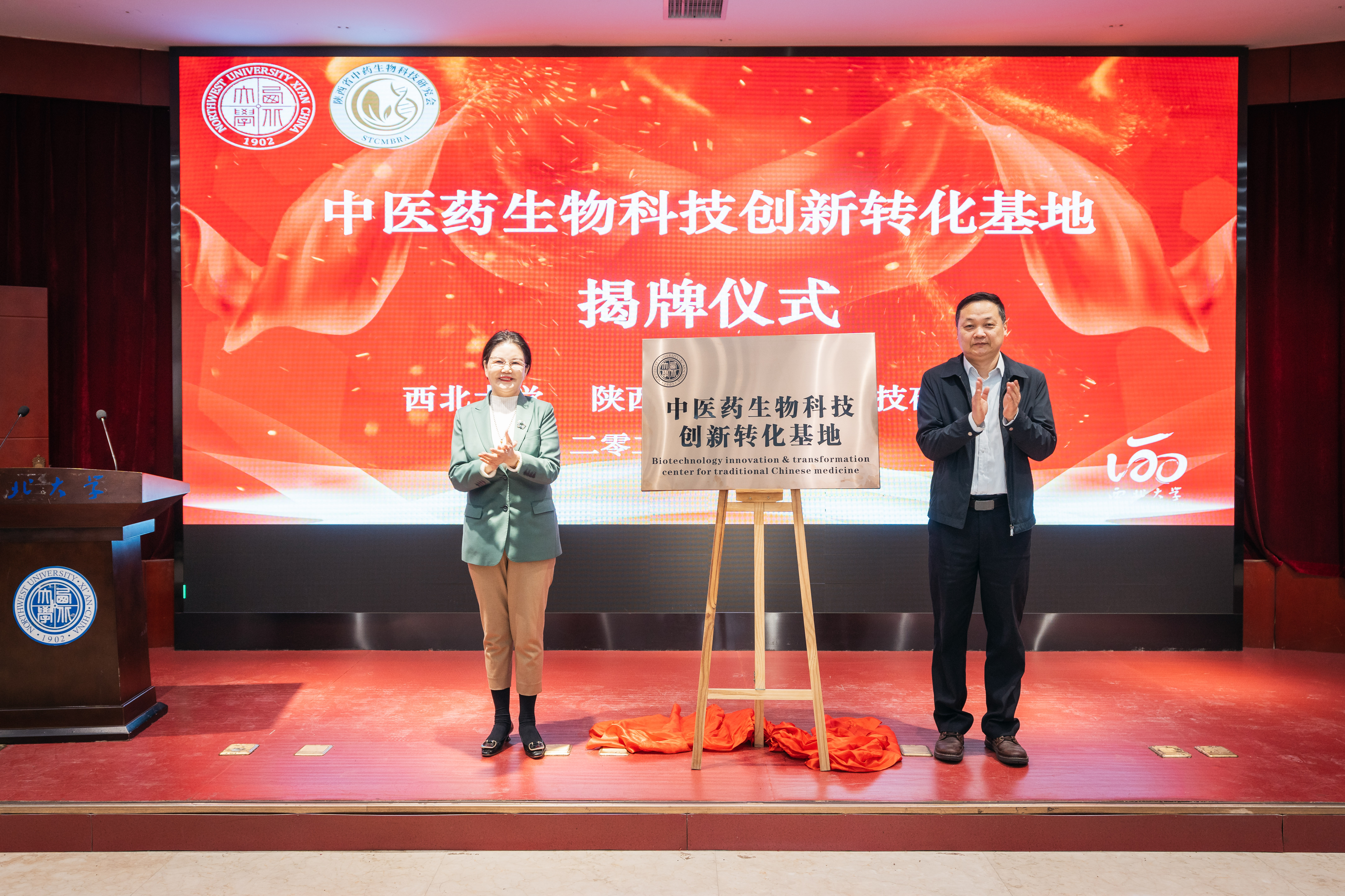 陈富林和李新芳共同为“西北大学中医药生物科技创新转化基地”揭牌。