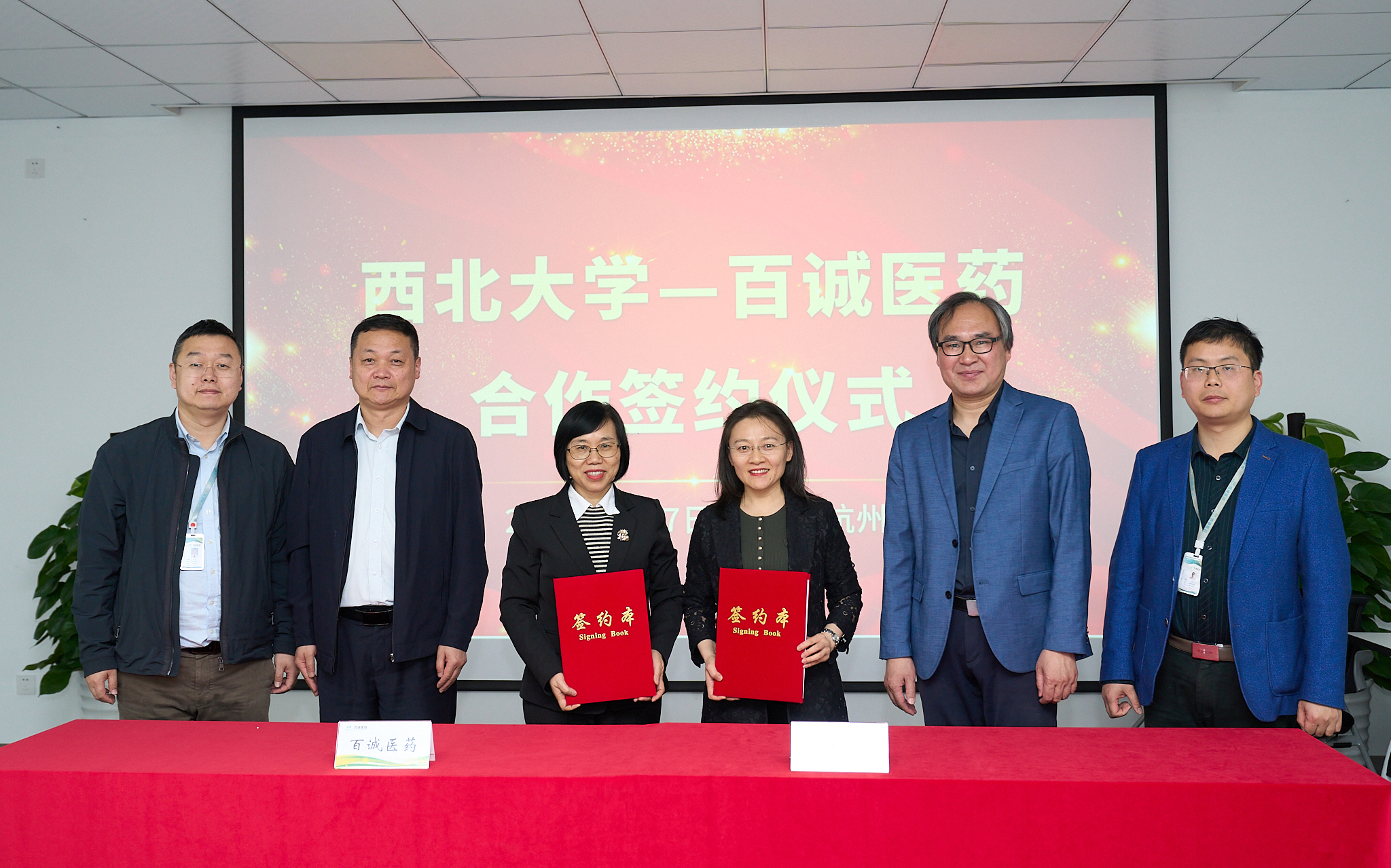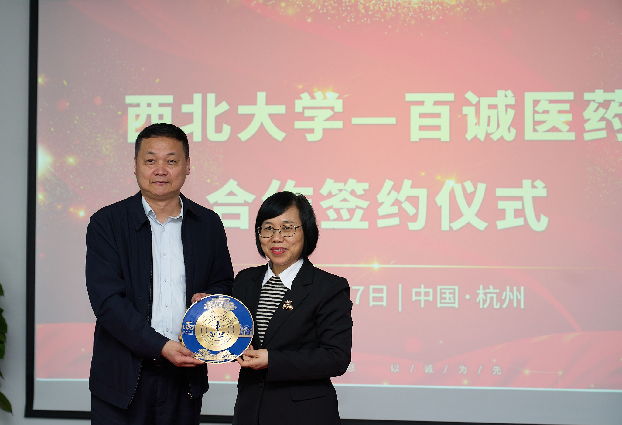 4月7日下午,我校生命科学学院(原生物系)86级优秀校友,百诚医药董事长、总经理楼金芳捐赠100万元设立的“西北大学楼金芳新生奖学金”“西北大学楼金芳奖教金”签约仪式在杭州百诚医药科技股份有限公司举行。校党委常委、副校长陈富林出席仪式,国内处、生命科学学院、医学院等单位相关负责人,生命科学学院老教师代表和部分学科带头人参加。