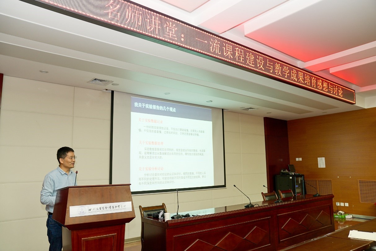 为全面落实立德树人根本任务,切实提高广大教师的教育教学水平和课程建设水平,进一步发挥教学名师引领示范作用,5月31日,学部邀请我校物理学院教授、陕西高等学校教学名师郑新亮教授做客“名师讲堂”,为学部教师作“一流课程建设与教学成果培育感想与讨论”的专题报告。报告会由生命科学学院副院长张亚妮教授主持。