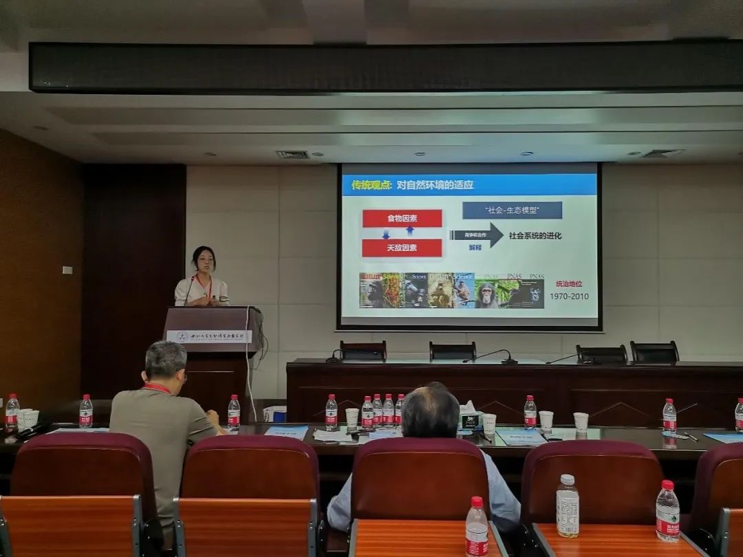 齐晓光教授课题组报告题目为“寒冷适应促进亚洲叶猴社会系统的演化”。6600万年前恐龙的灭绝才使得夜行独居,体型瘦小的灵长类有繁盛的机会。面临竞争以及被捕食风险的昼行灵长类,选择群居生活以寻找食物和抵御天敌。之后的3000万年灵长逐渐演化出复杂的社会系统以及多元化的行为策略,大脑也随之快速发育,形成了具有高度智慧的人类。课题组以亚洲叶猴多样的社会系统为研究社会演化的模板,研究发现不同灵长类的社会系统更倾向于与其祖先一脉相承,即社会系统的演化具有遗传基础,提出灵长类复杂重层社会系统的“亚洲起源-聚合”假说,打破了西方学者半个世纪以来对重层社会起源的单一认识。基于“生态-行为-遗传”三方面研究,构建系统发育树、追溯社会系统的演化历史,发现亚洲叶猴的社会系统演化经历了两步式聚合,从祖先状态的一雄多雌单家庭群先到半重层社会再到真正意义的重层社会,这两次聚合的驱动力为历史的寒冷气候。利用比较基因组学发现寒冷作为选择压力导致聚集发生的遗传学基础为体内的多巴胺和催产素,该类激素在母性关怀、社会纽带方面发挥重要作用,增加婴猴的成活率的同时,个体的友好行为、容忍度随之增肌,从而促进聚合的发生。