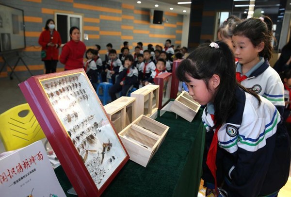 11月1日,学院联合西北大学博物馆宣教部在碑林区五味什字小学举办“小小昆虫 大大世界”科普进校园活动,活动以“昆虫复眼的秘密”为主题,通过科普讲座、标本观察、手工制作、趣味游戏等形式,全方位、多角度地向学生们展示了动物科普的魅力。
