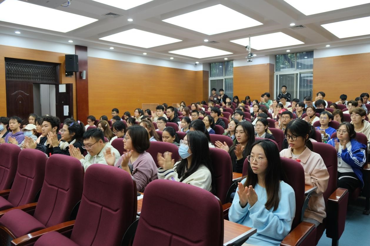 座谈会后,华大基因为学院2021级、2022级和2023级本科生举办了华大创新班宣讲会,华大学院副院长高强、华大学院学生与合作部部长王林鹏及华大学院学生管理负责人丁林分别介绍了华大基因的发展历程、组织架构和集团文化,展示了华大基因学院下属各研究所的研究方向和主要成果,希望同学们积极报名参加华大创新班。