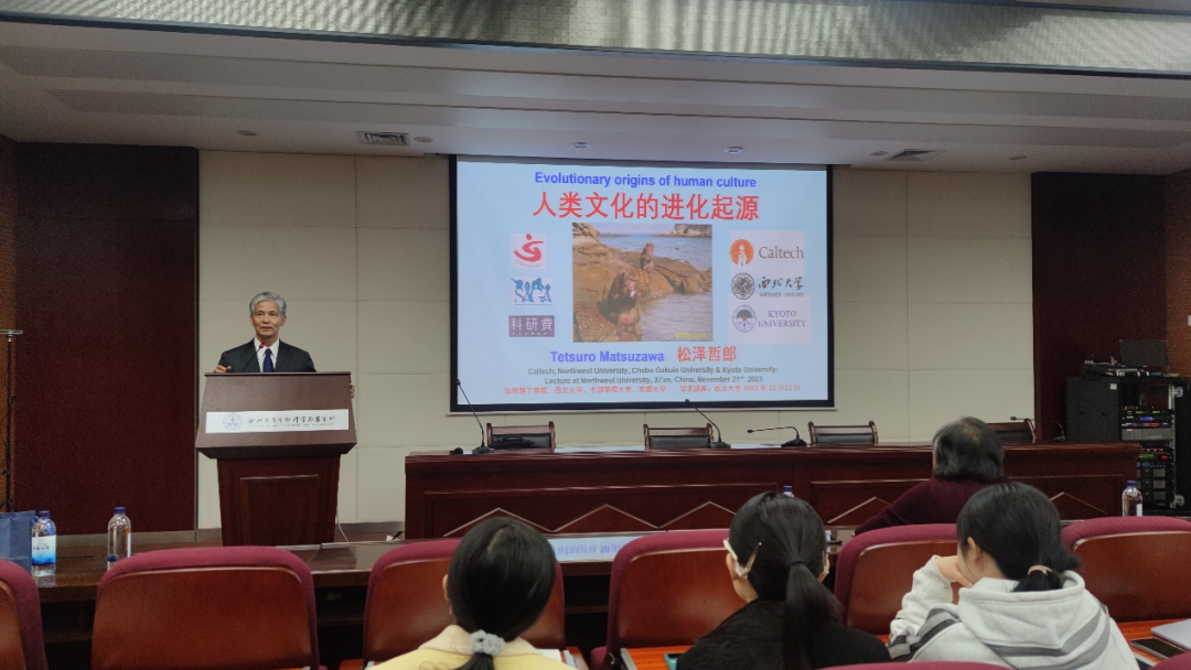2023年11月21日下午2时,国际著名灵长类学者松泽哲郎(Tetsuro Matsuzawa)教授受我校生命科学学院邀请,于太白校区博望报告厅开展主题为“Evolutionary origins of human culture (人类文化的进化起源)”的学术讲座,讲座由付爱根院长主持会议。