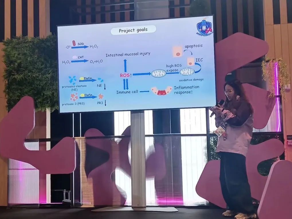在魏岱旭教授与范铭沁老师的指导下,NWU-CHINA-A团队成员共同完成的选题、实验、社会实践与科普教育、Wiki网页制作等一系列赛事相关工作。前往巴黎的NWU-CHINA-A团队代表通过Team Booth、PLAZA等方式将“Super Probiotics”项目从选题背景、实验结果与社会实践等方面进行全方位地展示宣讲,吸引了来自世界各国的评委、专家、学生前来观看。