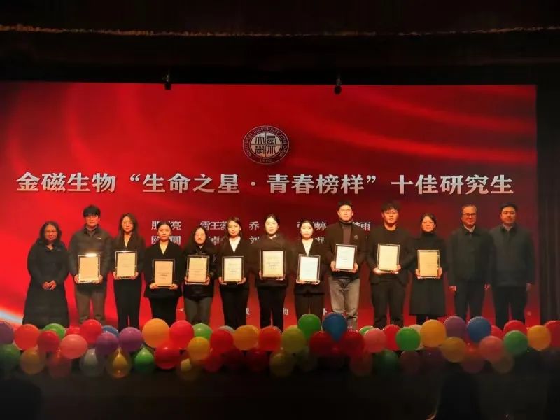 郭莉莉女士、付爱根老师、崔延力老师为金磁生物“生命之星·青春榜样”十佳研究生颁发荣誉证书
