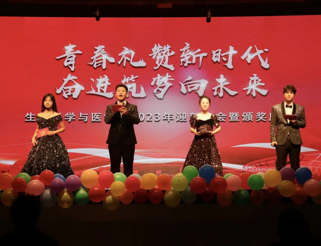12月1日晚,学部2023年迎新晚会暨颁奖庆典在太白校区大礼堂隆重举行。中江集团总经理梁翠丹女士,杭州百诚医药科技股份有限公司董事长、总经理楼金芳校友,西安金磁纳米生物技术有限公司技术总监郭莉莉女士,西北大学校友郝重庆博士,校党委常委、副校长、437437必赢国际网址主任陈富林老师,国内合作与校友工作处处长崔延力老师,研究生院副院长寇楠老师,校心理健康教育中心常务副主任张向强老师,碳中和学院负责人陈京京老师,西北大学第一医院党委书记郭亚东老师,副院长陈晨老师,纪委书记王培老师,学部领导班子、各系主任、学科负责人、班主任、研究生导师及辅导员出席典礼,2023级本科生参加典礼。