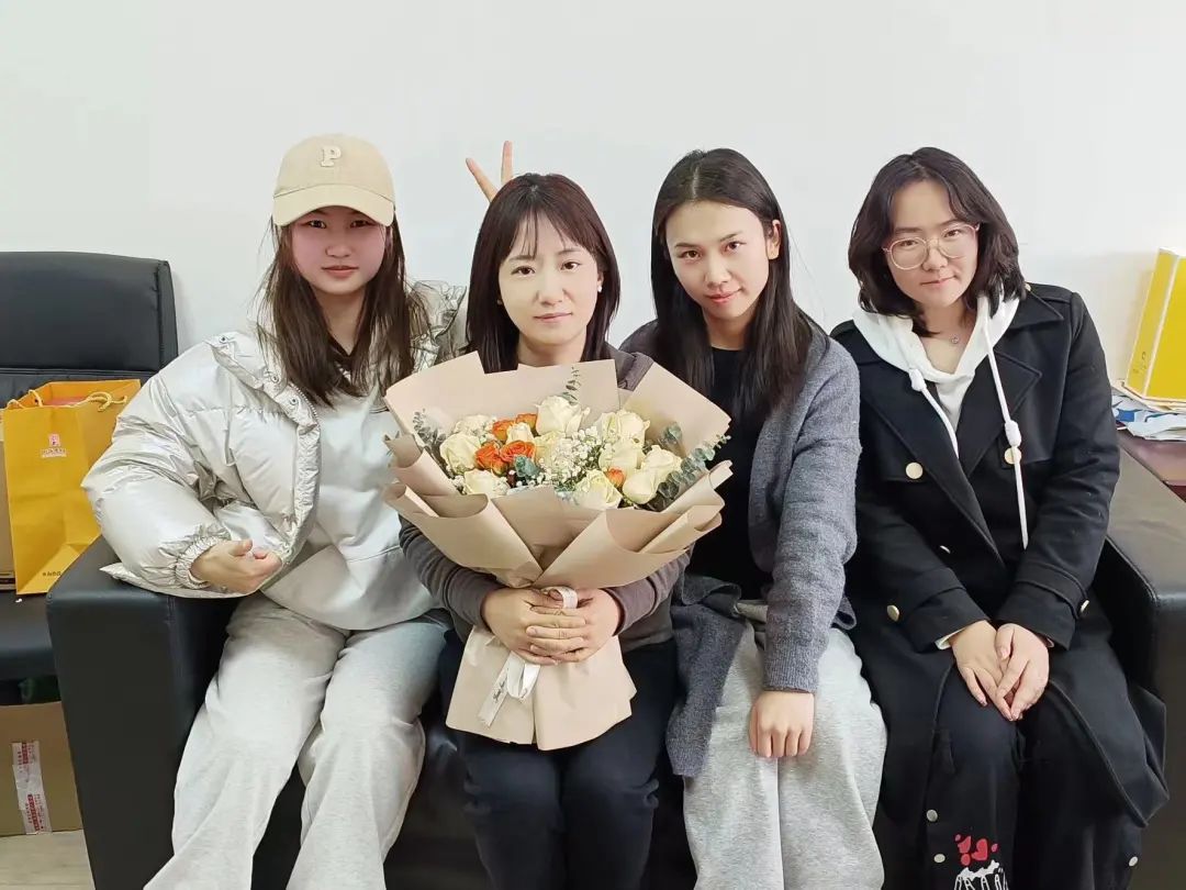 丹心映日月,赤诚浇桃花。同学们第一时间携带着这份礼物来到了各位导师的办公室,为女神导师献上火红热情、芳香四溢的鲜花和自己美好的祝福!