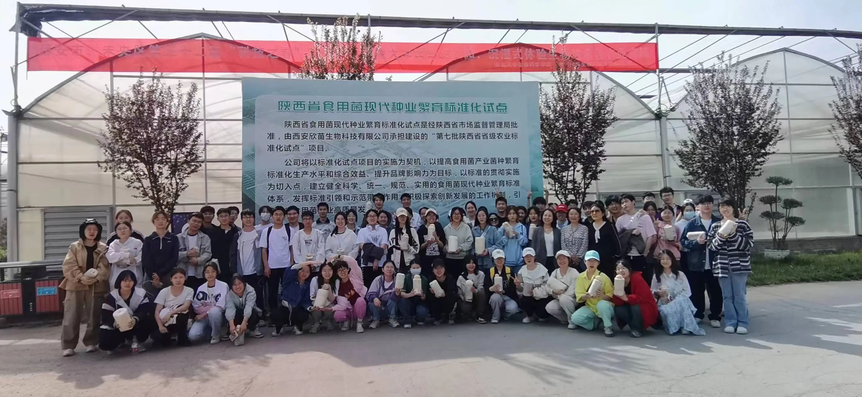 欣苗生物有关负责人带领大家先后参观了菌包培养中心、食用菌接种室及实地生产基地,讲解了食用菌的生产研发、菌渣处理、食用菌多糖提取等情况,帮助大家了解了企业创立背景、业务布局与办公环境。王峥嵘董事长对学院老师们来公司交流表示欢迎,介绍了公司在生态农业与未来食用菌研发方面的发展目标,希望双方拓展出更多的合作可能,同时欢迎更多优秀人才加入。张亚妮副院长对欣苗生物的接待表示感谢,期望通过此次交流,在毕业生就业、教学实习、拓展实训等方面达成深度合作,开辟更广阔的合作空间。最后,双方就共建实践教学基地达成共识,王峥嵘董事长、张亚妮副院长共同为“437437必赢国际网址西安欣苗生物科技有限公司 实践教学基地”揭牌。