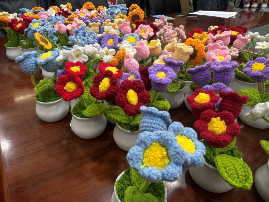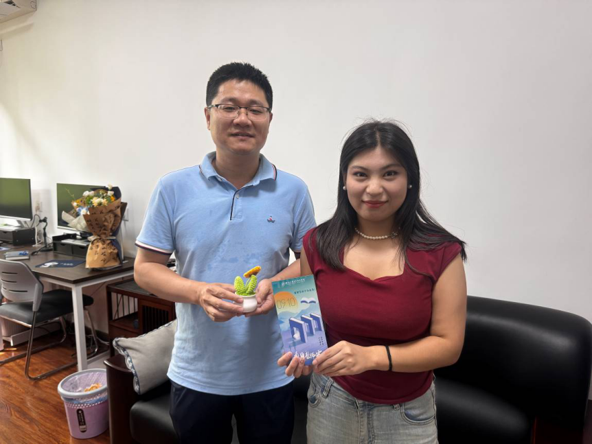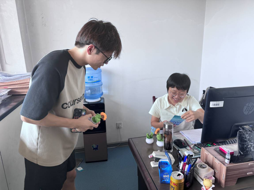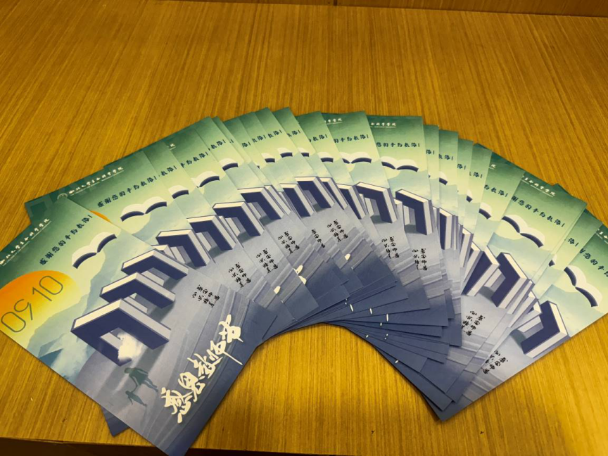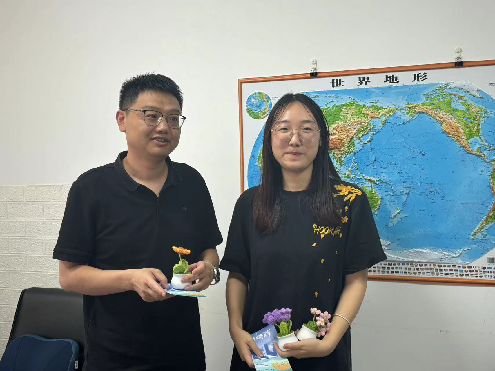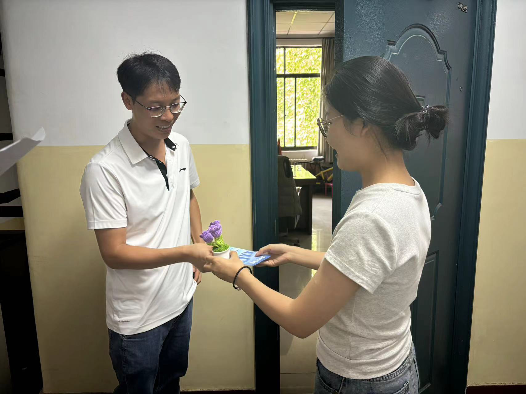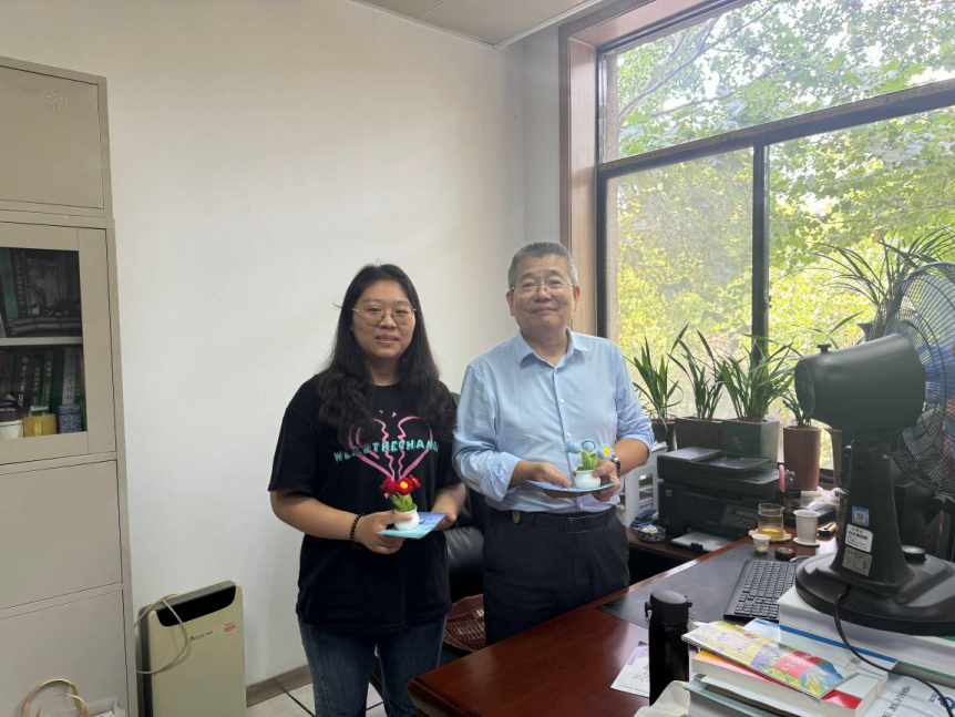 七支学生代表队伍穿梭于学部的科研楼与办公楼之间,心中满载着对恩师最真挚的祝福与感激,将精心准备的针织盆栽与满载心意的贺卡送入每一位辛勤耕耘的老师们手中。这份礼物虽小,却承载着学生们沉甸甸的爱与祝福。这份礼物不仅能为老师的办公室增添一抹绿意与温馨,更能够在师生之间搭建起了一座理解与感激的桥梁。