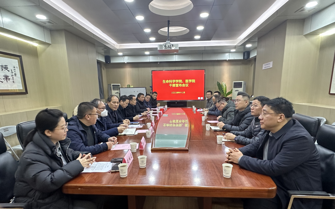 12月30日下午,生命科学学院、医学院干部宣布会议在太白校区文博楼博睿会议室举行,校党委常委、副校长陈富林,校党委常委、副校长、党委组织部部长李振海出席会议,生命科学学院、医学院党政班子、科级以上干部参加会议,会议由生命科学学院党委书记刘小光主持。