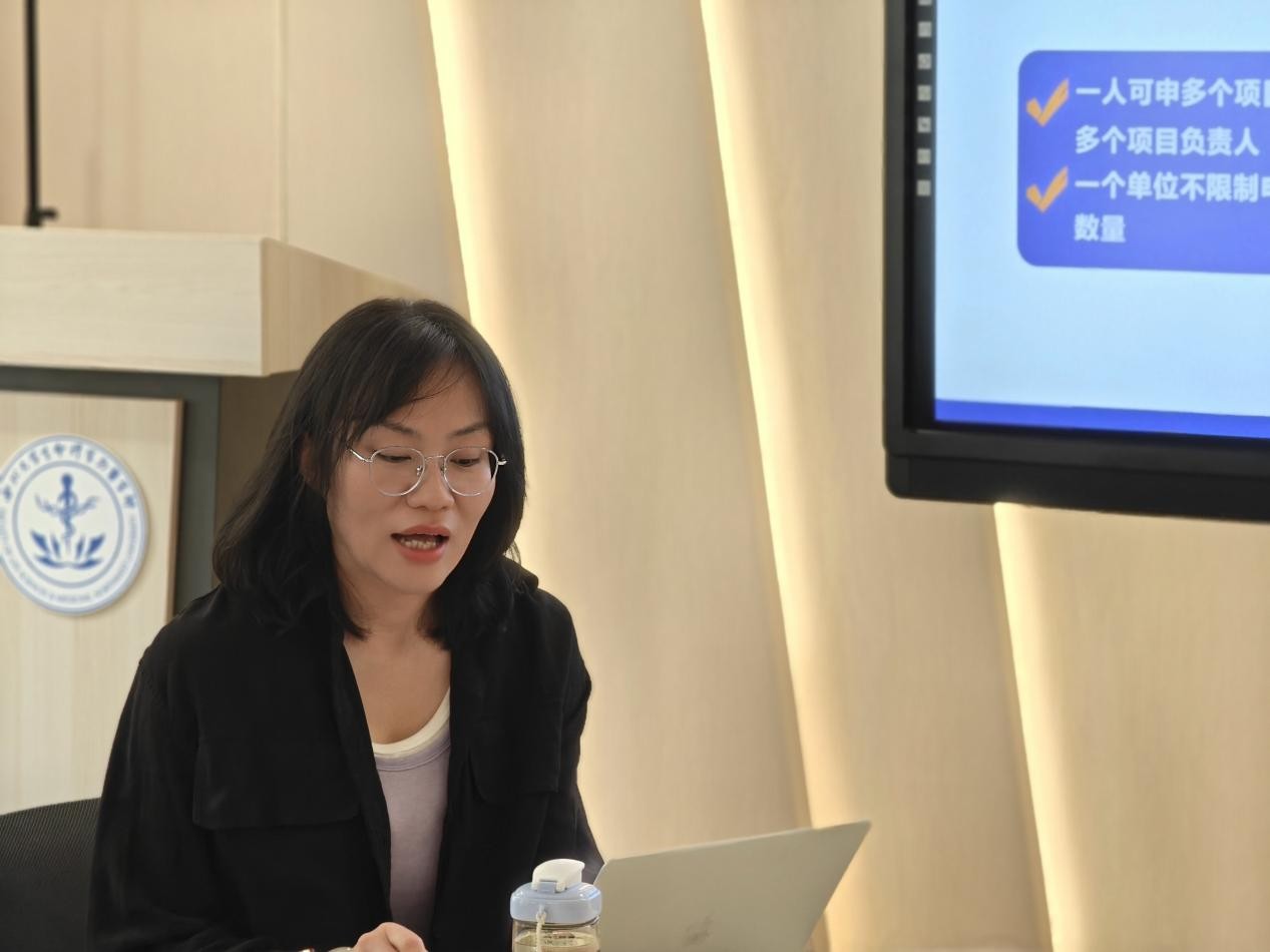 会上,马苓兮对国家外国专家项目进行了系统解读,内容涵盖政策背景、申报流程以及最新变化。她结合学校近年来成功申报的典型案例,详细剖析了项目申报的关键环节与注意事项。随后,康蓉就项目申报书的撰写技巧与常见问题开展了专题讲解。并通过实际案例分析,帮助教师规避申报过程中的常见错误。她强调,申报材料不仅要逻辑严谨、格式规范,充分展现项目的创新性与应用价值,还需强化与外国专家的前期沟通,以保障合作计划切实可行。