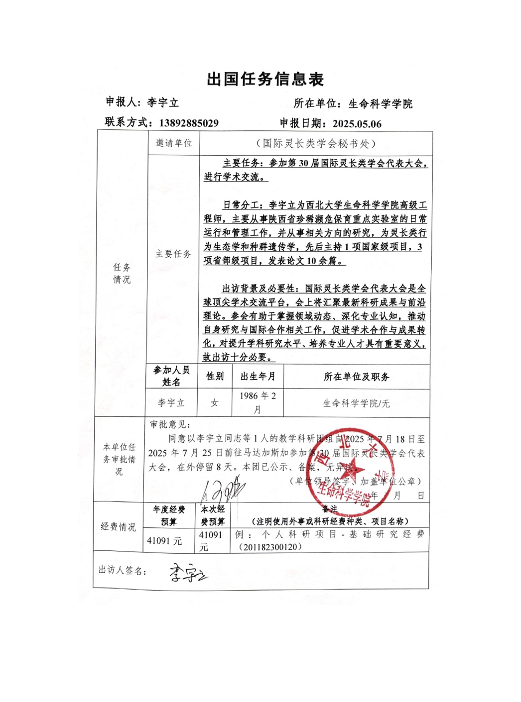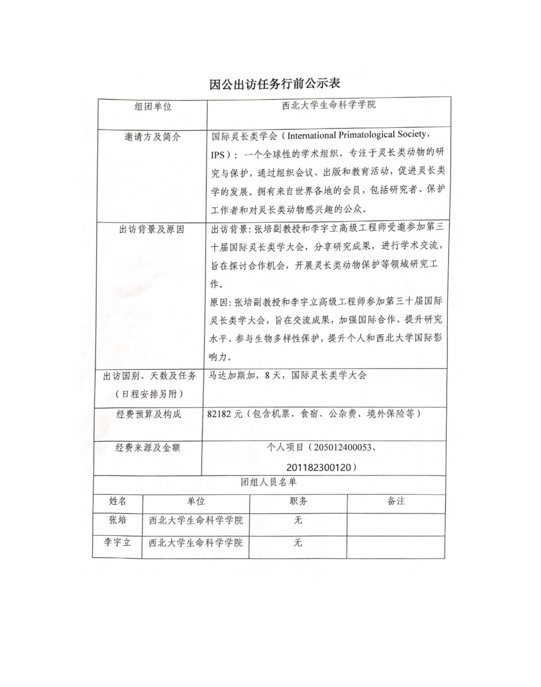 因公出访任务行前公示表