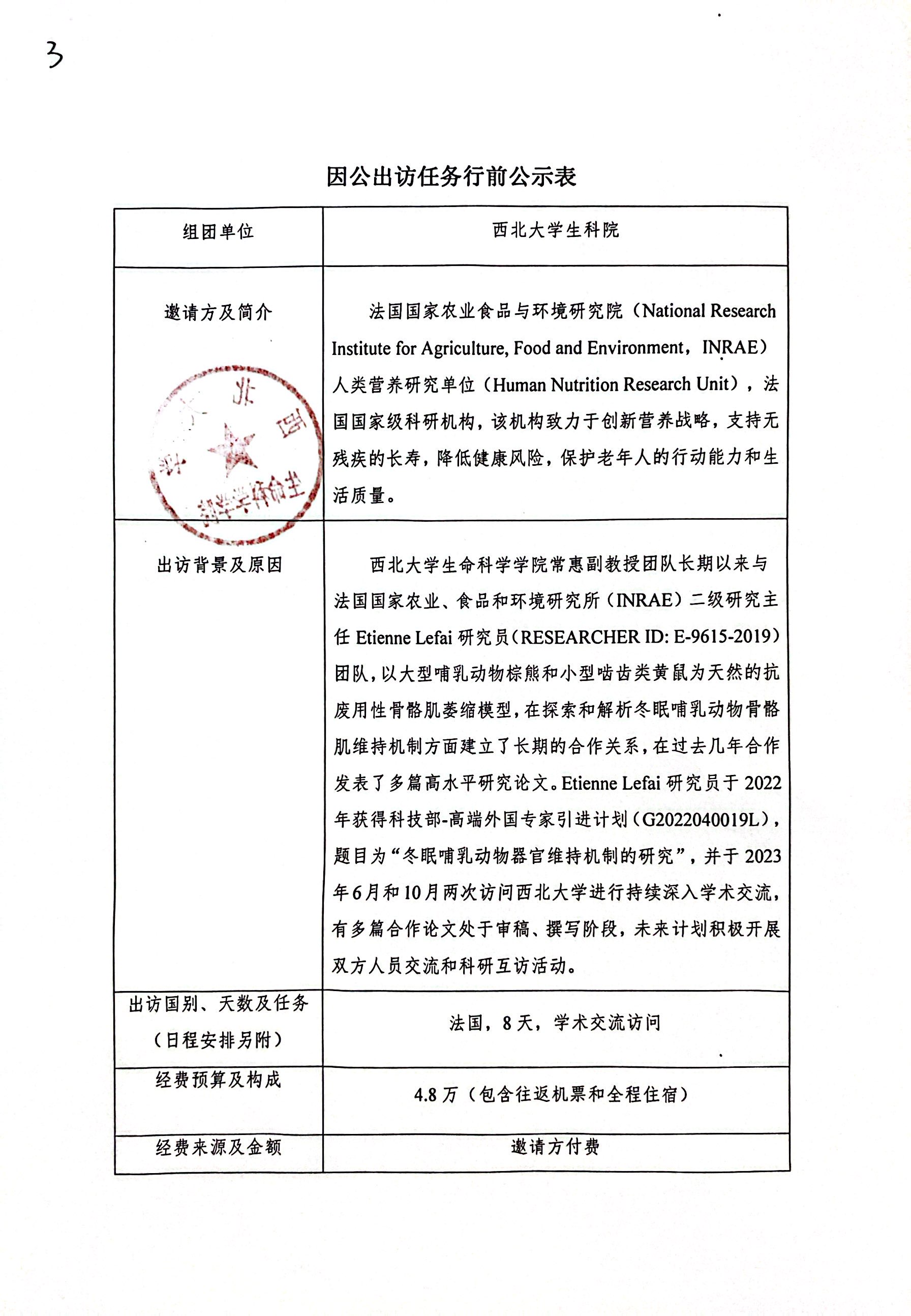 因公出访任务行前公示表