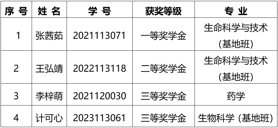 生命科学学院2023-2024学年 “金域医学奖学金”拟推荐名单公示