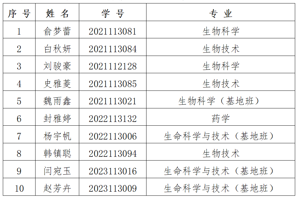 生命科学学院2023-2024学年 “西北大学二十一世纪‘生命之星·青春榜样’十佳大学生奖学金”拟推荐名单公示