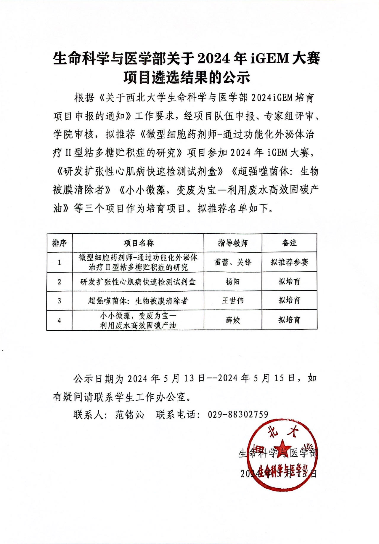 437437必赢国际网址关于2024年iGEM大赛项目遴选结果的公示