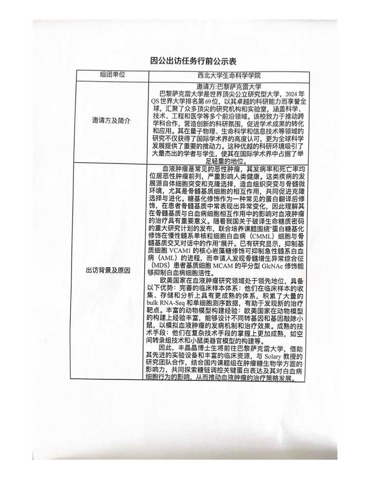 因公出访任务行前公示表