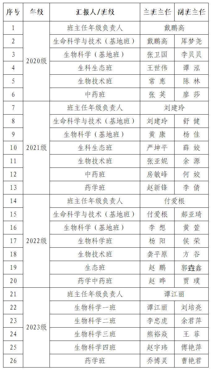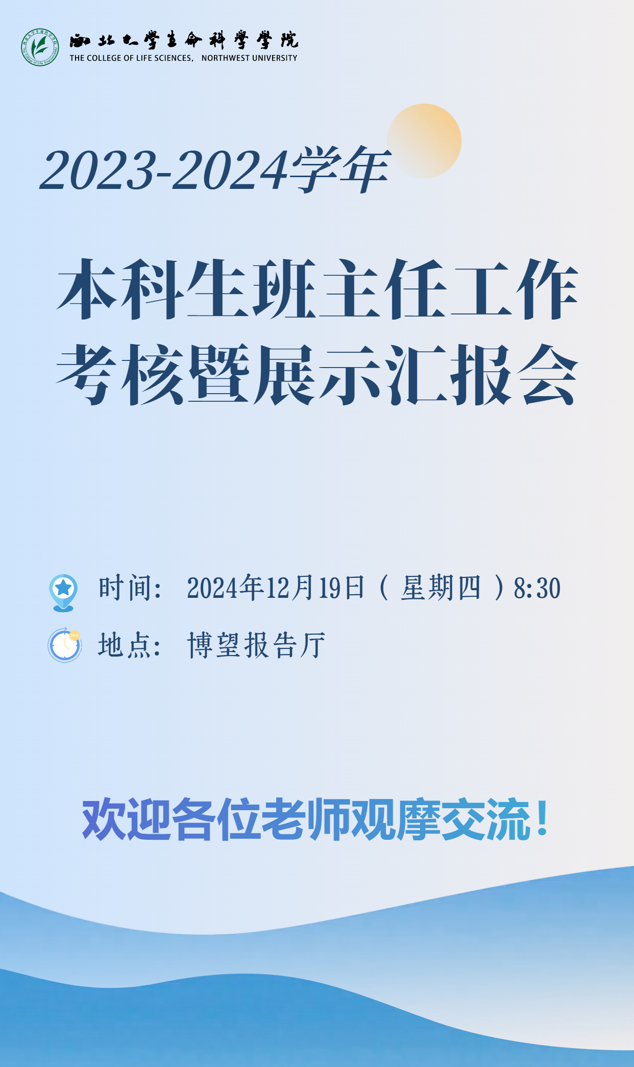 生命科学学院关于召开2023-2024学年本科生班主任工作考核暨展示汇报会的通知