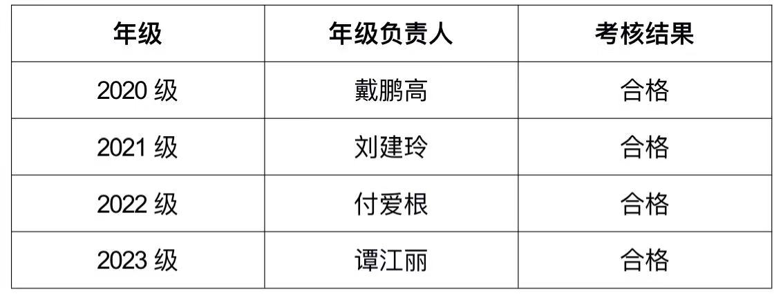 根据学院《本科生班主任工作实施细则》《本科生班主任工作考核办法》相关规定,按照《关于2023-2024学年本科生班主任考核工作的通知》有关程序,经个人自评、学生评议、述职汇报,学院审核研究,现将2023-2024学年本科生班主任考核结果公布如下。
