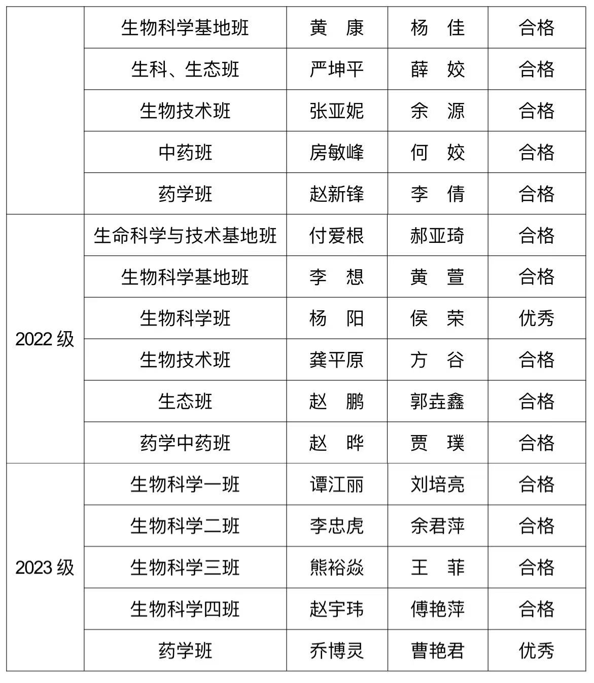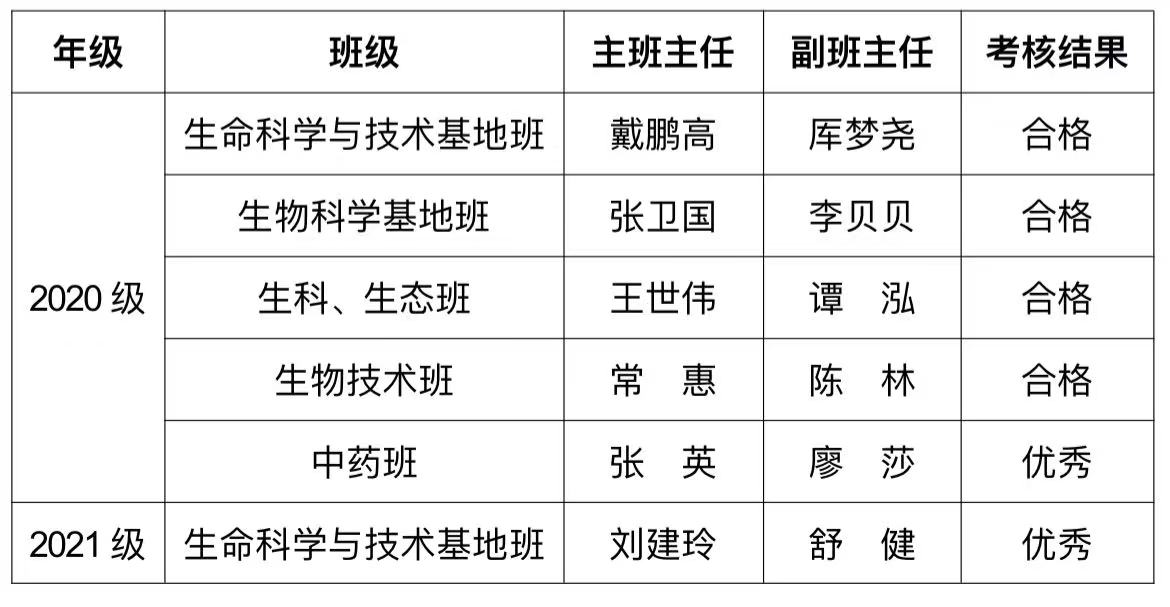 生命科学学院关于2023-2024学年本科生班主任考核结果的通知
