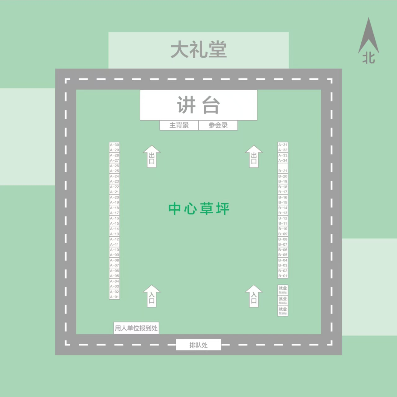 招聘当天,求职学生持本人学生证/一卡通/简历,从会场入口处(草坪南侧)排队有序参会。