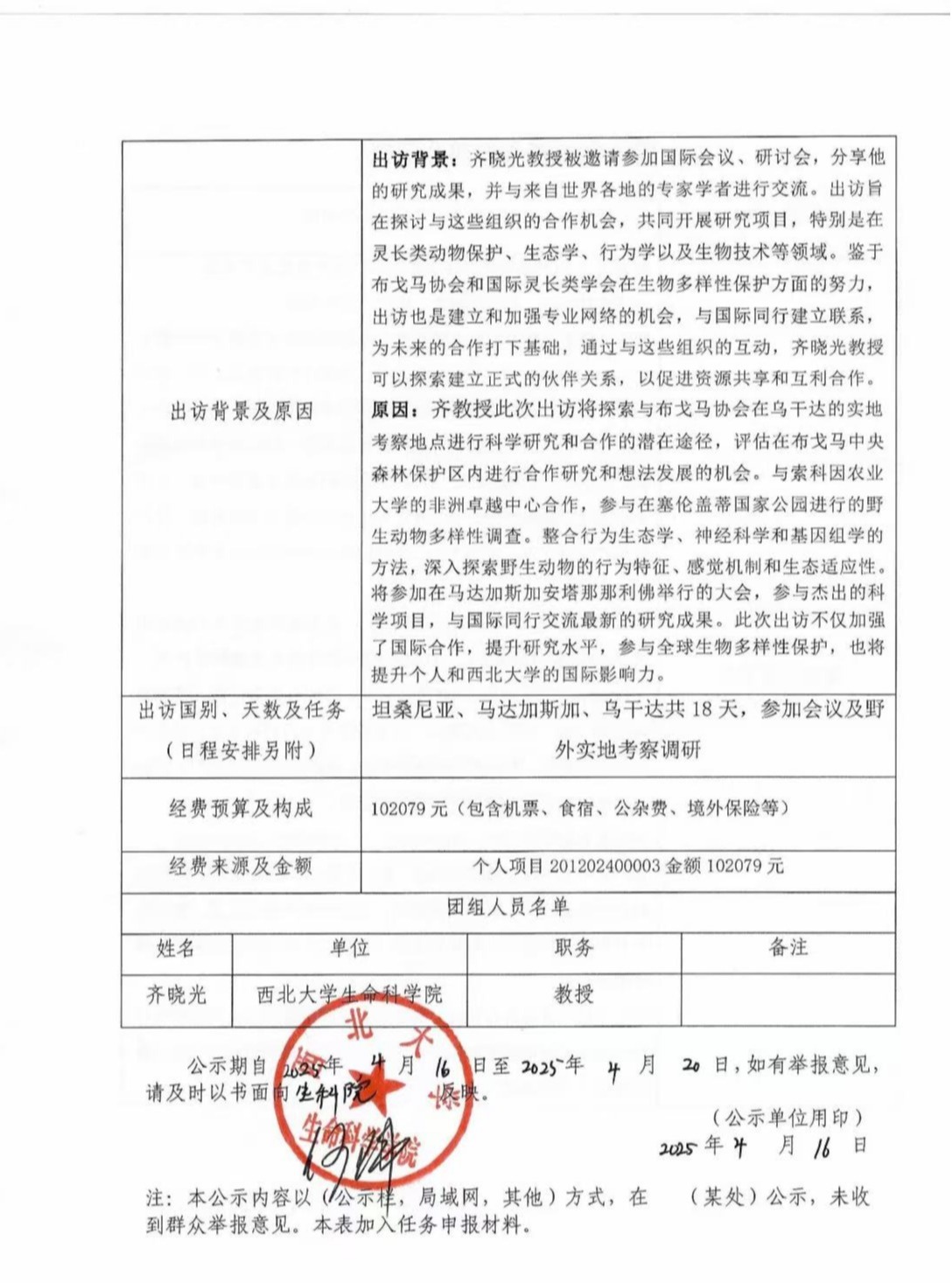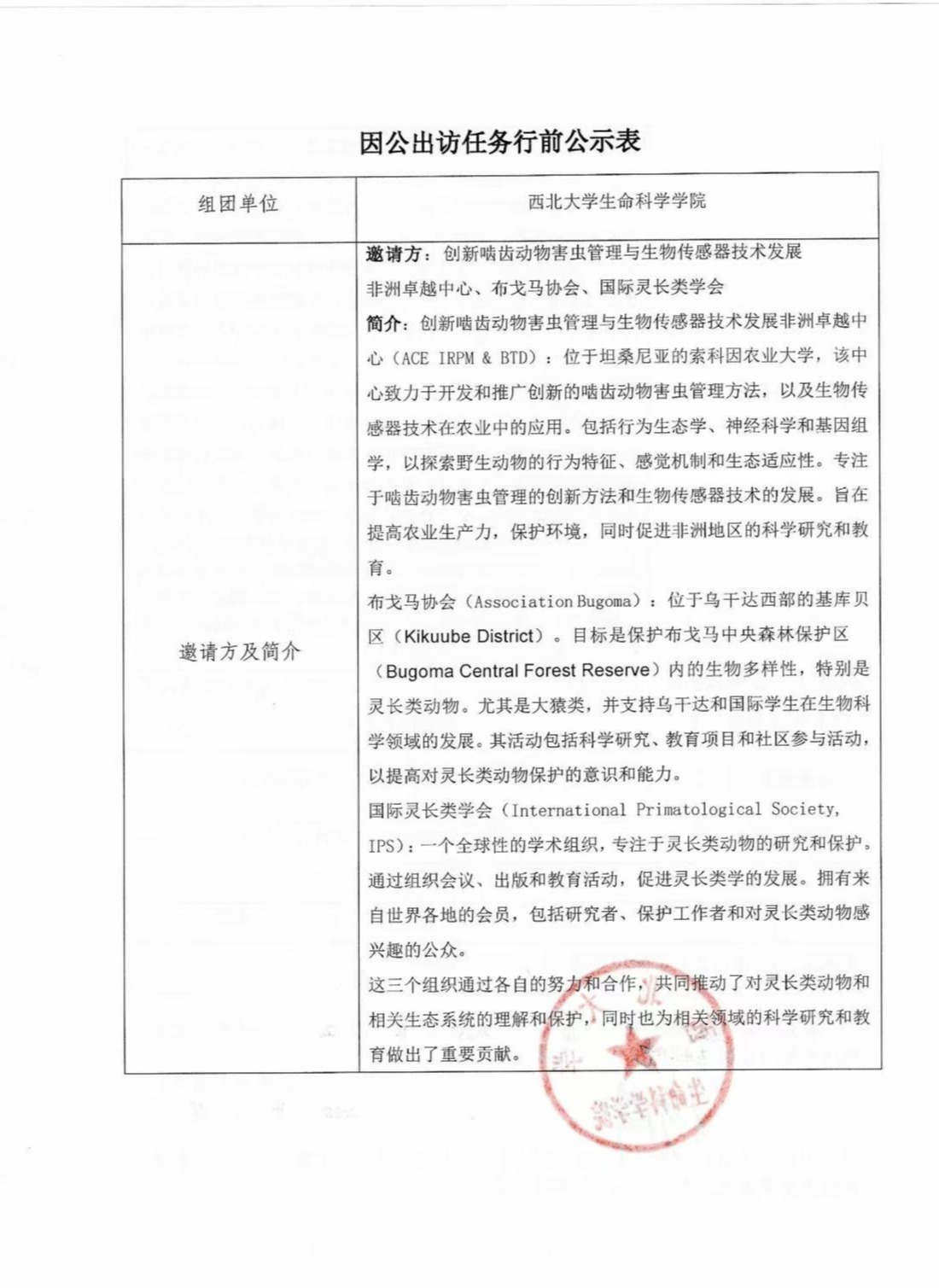 因公出访任务行前公示表