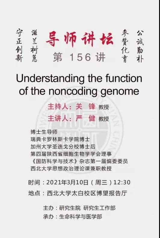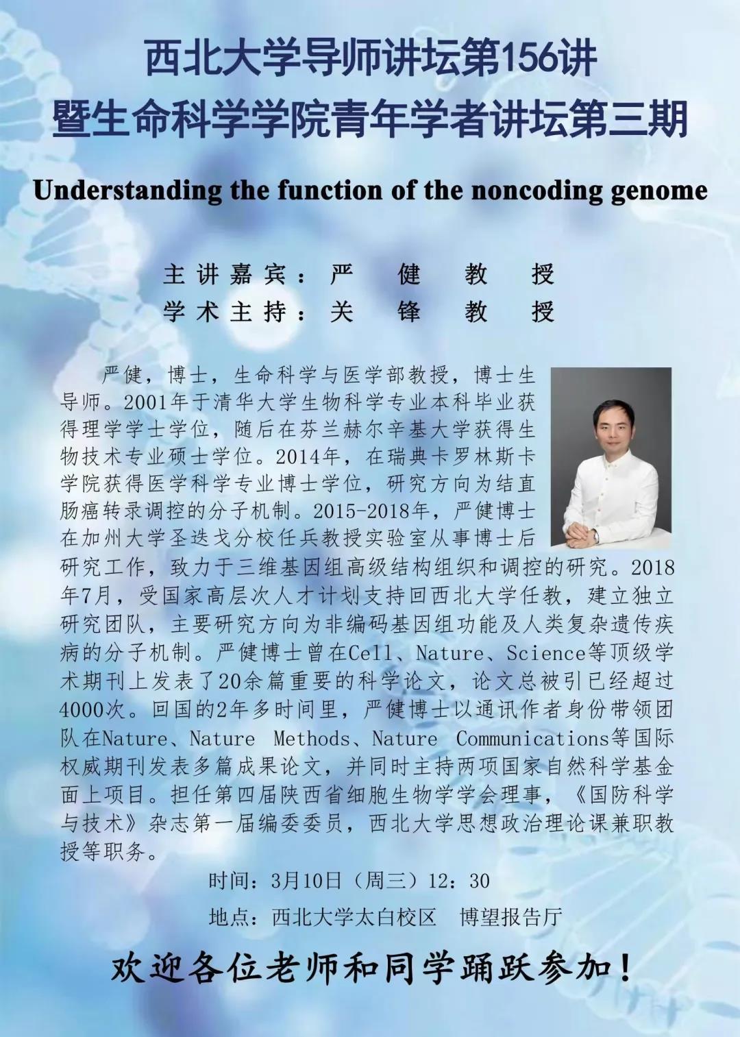 西北大学导师讲坛第156讲暨生命科学学院青年学者讲坛第三期