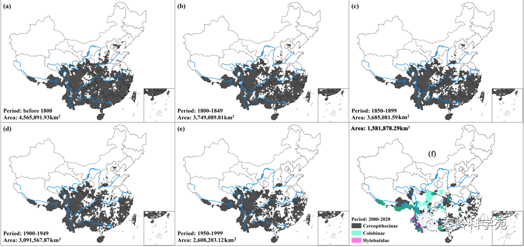 1175-2020年中国灵长类动物的分布(图片:文章)