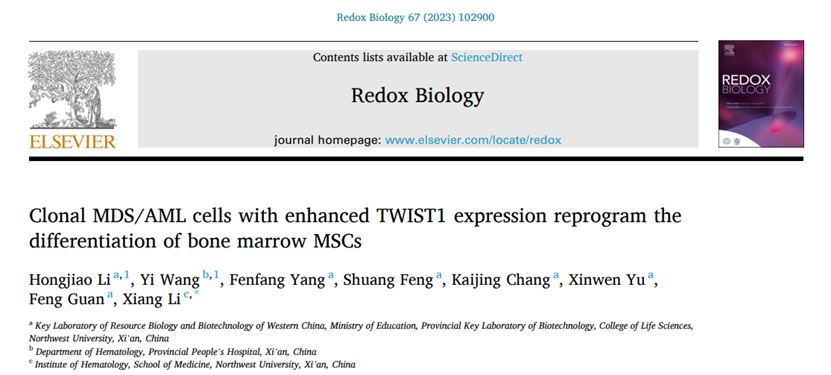 近日,西北大学437437必赢国际网址李想教授团队在MDS克隆细胞中TWIST1影响间充质干细胞分化重编程的分子机制的研究中取得了新进展,研究结果分别发表在《Redox Biology》杂志(中科院一区TOP期刊,IF=11.4)以及《Cell communication and signaling》杂志(中科院二区期刊,IF=8.4)。