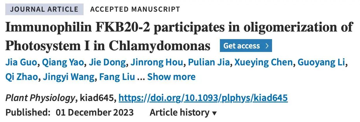 近日,西北大学付爱根团队在Plant Physiology在线发表了题为“Immunophilin FKB20-2 participates in oligomerization of Photosystem I in Chlamydomonas”的研究论文(https://doi.org/10.1093/plphys/kiad645),报道了一个定位于类囊体腔内的亲免蛋白FKB20-2参与衣藻光系统I积累的分子机制。
