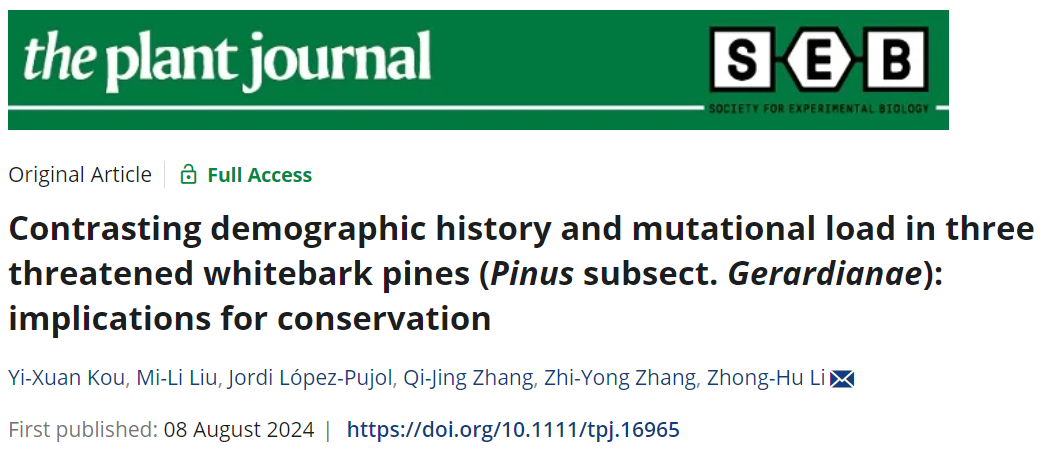 近日,437437必赢国际网址李忠虎教授团队在植物学领域国际知名期刊The Plant Journal(中科院一区TOP期刊,五年IF=7.1)在线发表了题为“Contrasting demographic history and mutational load in three threatened whitebark pines (Pinus subsect. Gerardianae): implications for conservation”的研究论文,探讨了松属白皮松组植物的群体历史动态及遗传负荷模式,并揭示了其濒危机制及环境适应潜力。