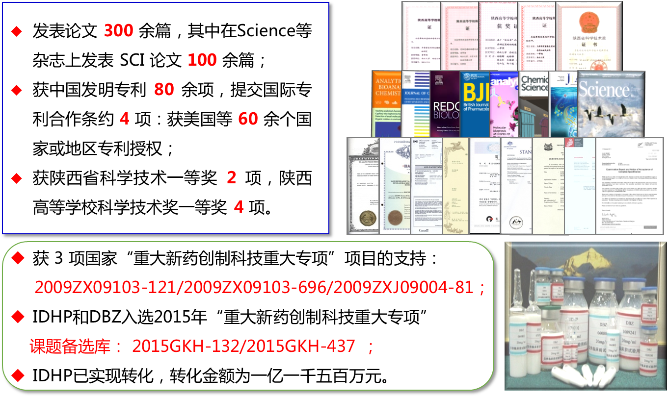 学术任职:西北大学-深圳清华大学研究院共建"创新中药及天然药物研究"联合实验室主任,陕西省中医药管理局“中药复方效应成分分析”重点研究室主任,陕西新药技术开发中心特聘专家,九三学社中央促进技术创新工作委员会委员。