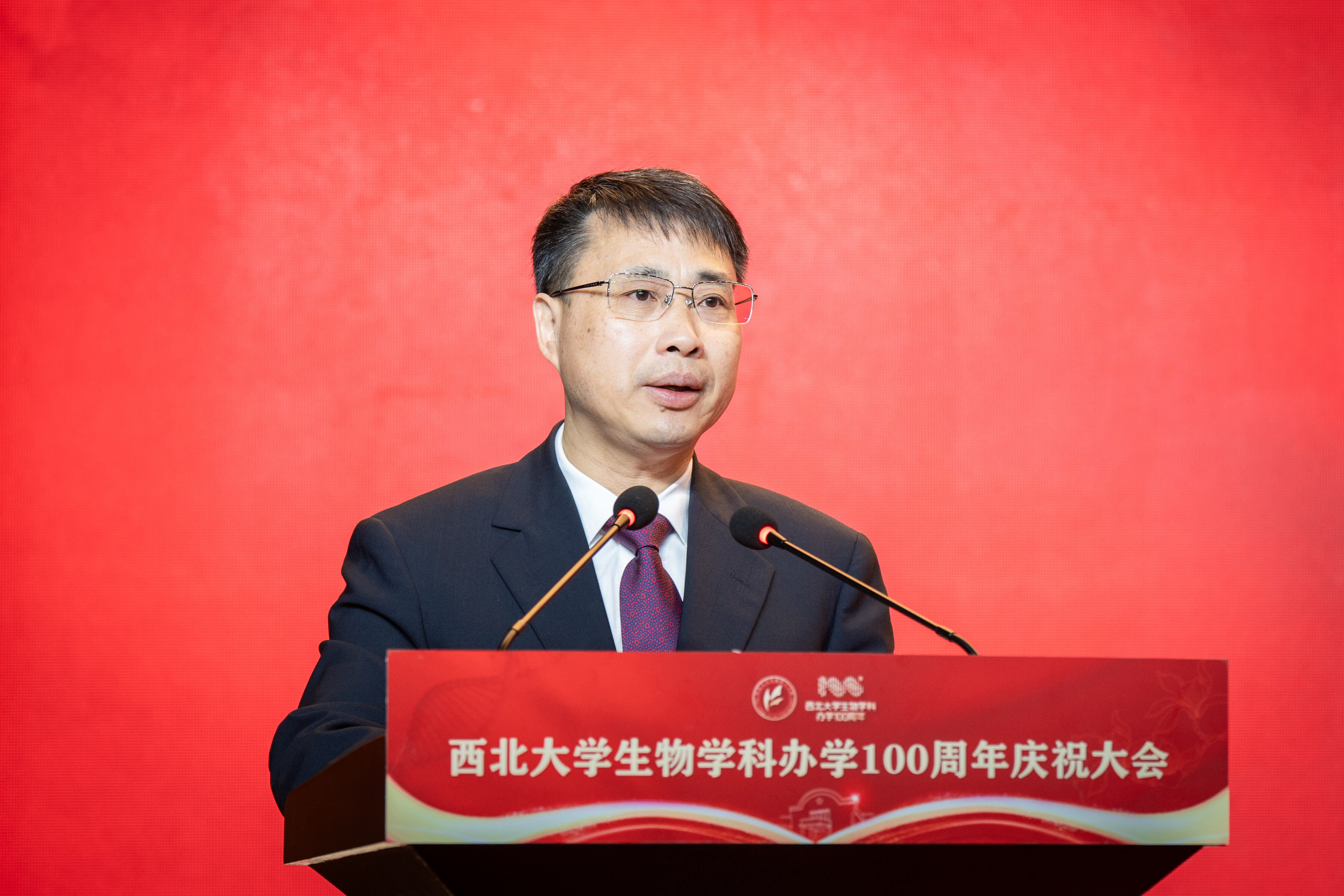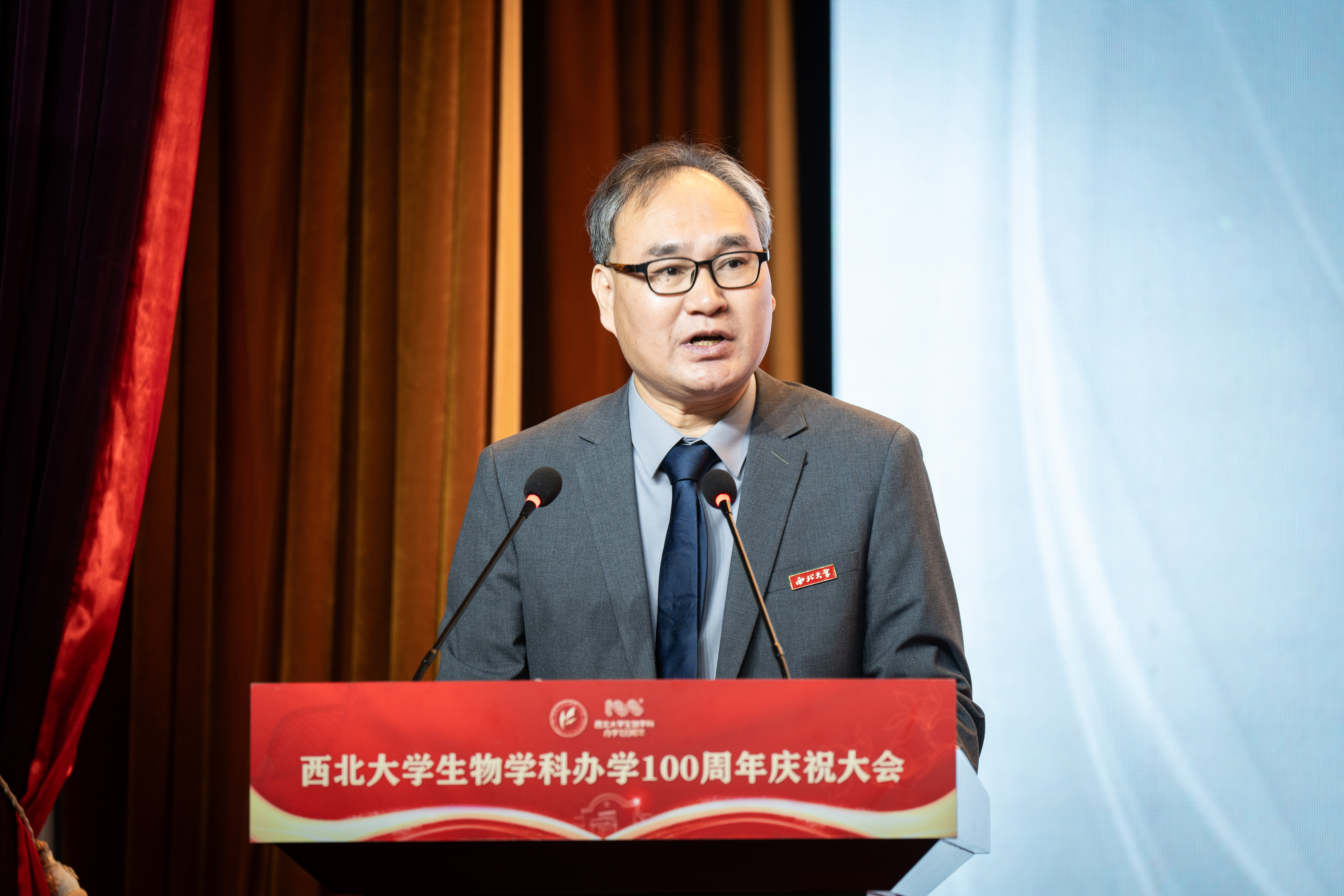 孙庆伟首先向生物学科办学100周年表示祝贺,向长期以来关心和支持生物学科发展的广大校友、兄弟单位、荣休教师职工表示衷心的感谢。孙庆伟肯定了西北大学生物学科百年来的办学成绩,他强调,站在百年新起点,要攻坚克难、戮力向前,奋力构建生物学科高质量内涵式发展的崭新格局。