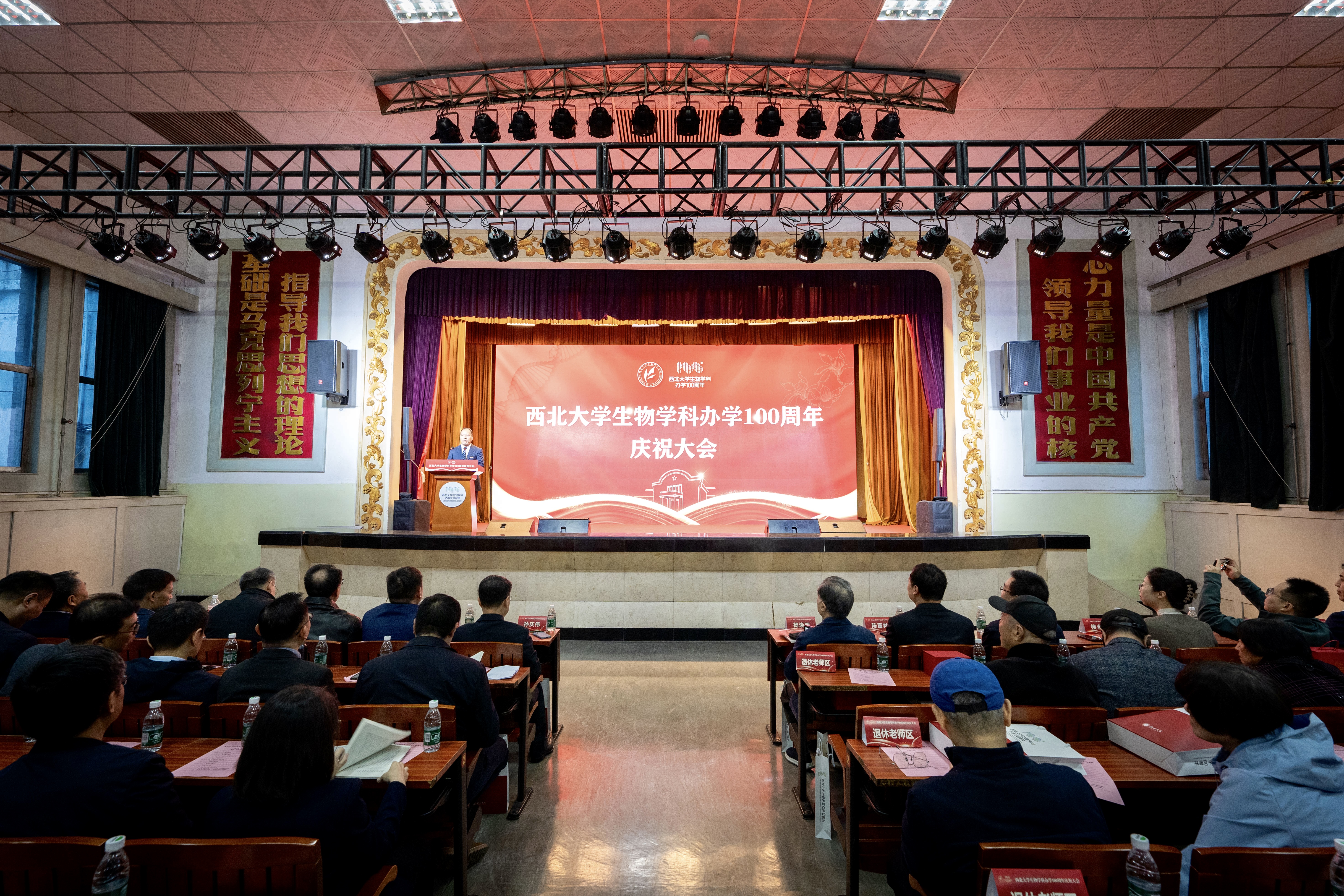 百年栉风沐雨,世纪薪火相传。11月2日上午,西北大学生物学科办学100周年庆祝大会在太白校区举行。中国科学院院士杨焕明,校长孙庆伟,校党委常委、副校长、437437必赢国际网址主任陈富林,河南大学副校长张立新,校党委常委、宣传部部长田明纲,华南农业大学原副校长吴鸿,我校原副校长陈超出席大会,兄弟院校、科研院所、合作单位负责人及代表,学校相关单位负责人,校友,学院荣休教职工和师生代表共计500余人参加大会。大会收到来自国内四十多家兄弟单位发来的贺信贺电。庆祝大会由生命科学学院党委书记刘小光主持。