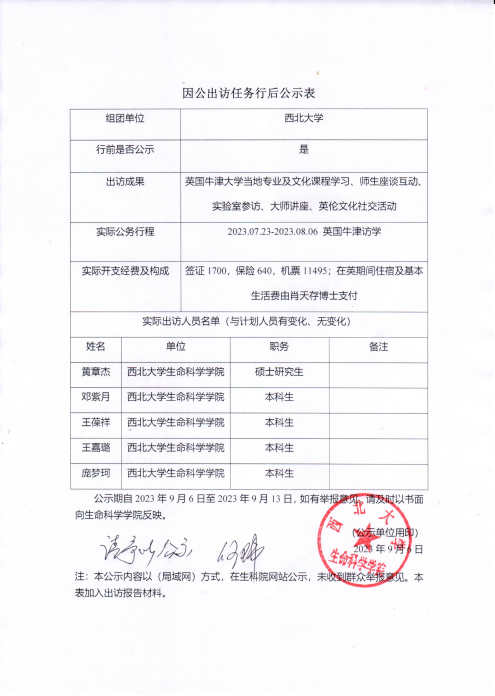 因公出访任务行后公示表